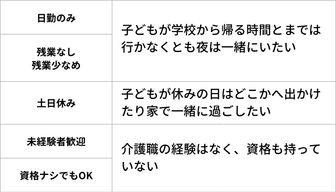 求人サイトの新着情報を待ってみても、自分に合う仕事が中々でてこない、という方はまずはご自身が設定している検索条件を見直してみましょう。そしてこの条件を、絶対に譲ることが出来ない『絶対条件』と、出来ればこんな条件の職場で働きたいという『希望条件』の2つに分けます。
