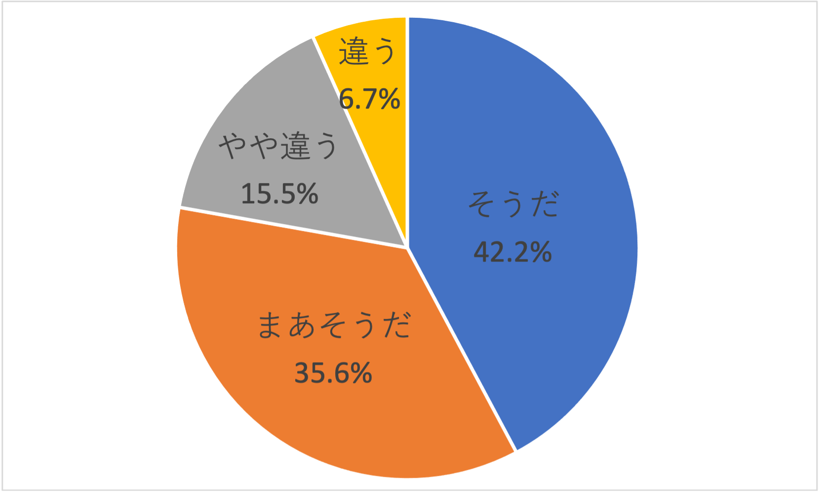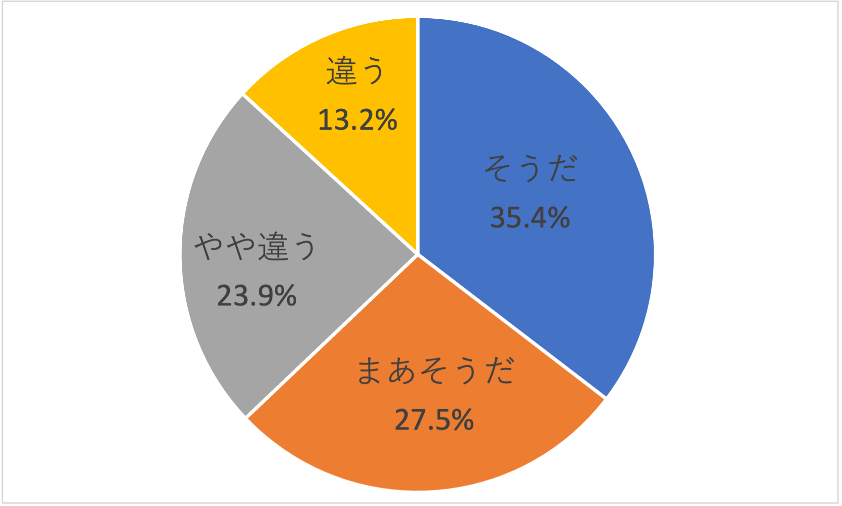 回答者のうち、『そうだ』が32.7%、『まあそうだ』が24.6%となり、合計57.3%という結果になりました。職場環境とは一見関係ないようにも思いますが、私生活と仕事を完全に切り離すことが難しい方もいます。仕事中も気になってしまうほど大きな悩みを抱えている場合は、一旦休職して身心をリフレッシュすることも検討してみましょう。