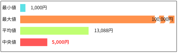 実際に回答いただいた方の最小値は1,000円、最大値は100,000円です。100,000円も上がった方は介護職員等ベースアップ等支援加算分だけでなく、ご自身の評価に基づくその他の手当などが同時に上がったのかも知れません。