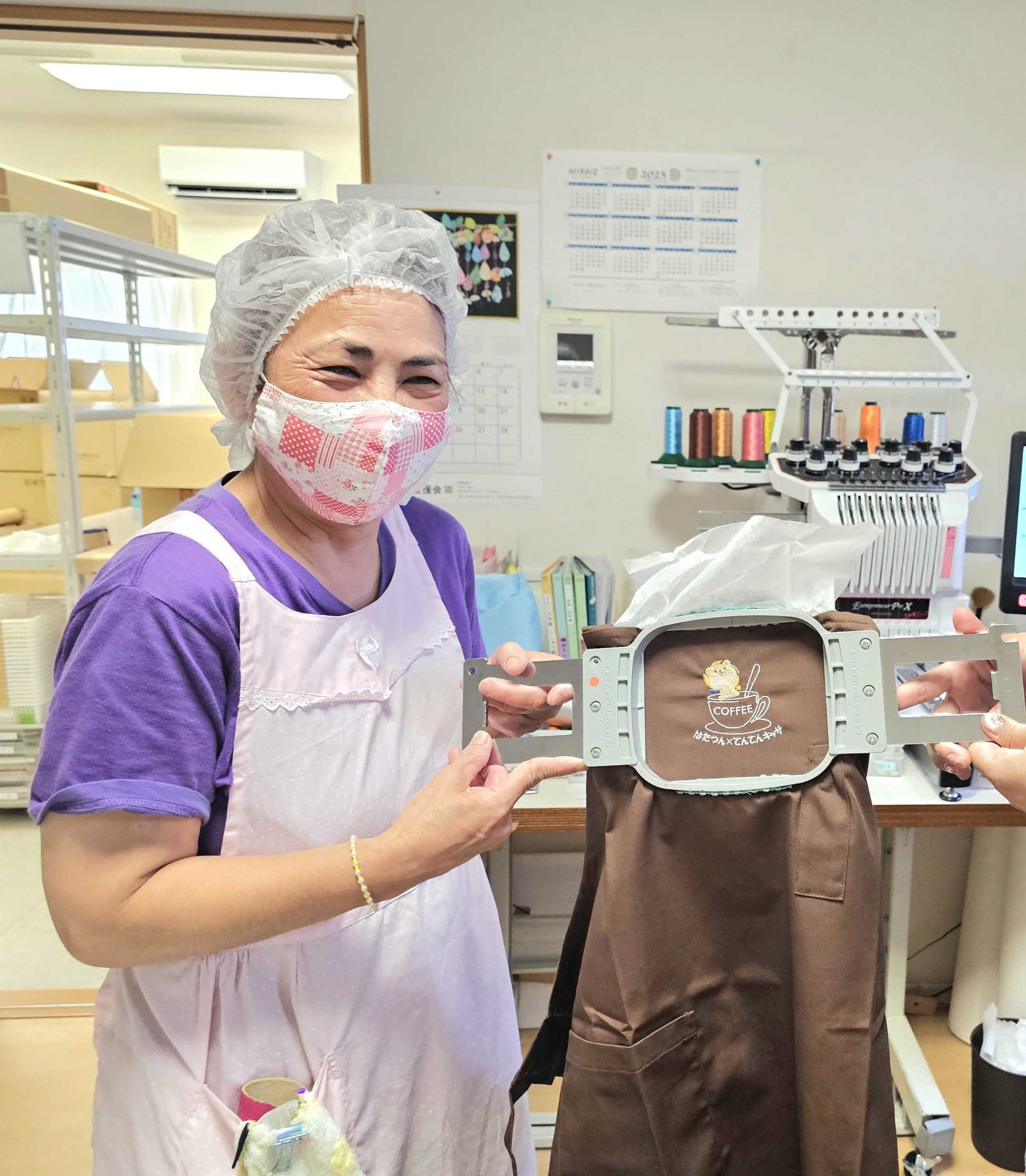 施設では、刺繍や内職作業、オリジナル商品の製作など、さまざまな活動を通じて、就労の機会と喜びを提供。
