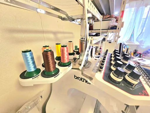 再度今回の刺繍データの中心位置、縦横間隔を微調整し、セットが完了、ミシンが動き始めたと思ったら、10分ほどで刺繍作業が終わりました!