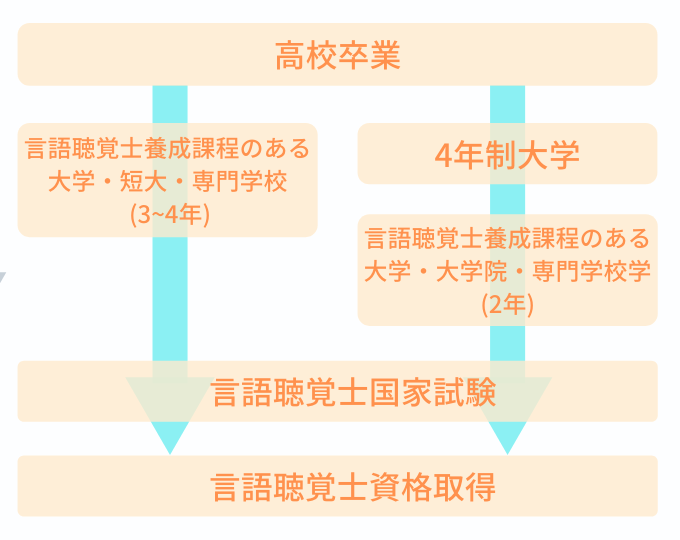どちらのルートにおいても、卒業あるいは卒業見込みで国家試験を受験し、合格すると、言語聴覚士として登録できます。